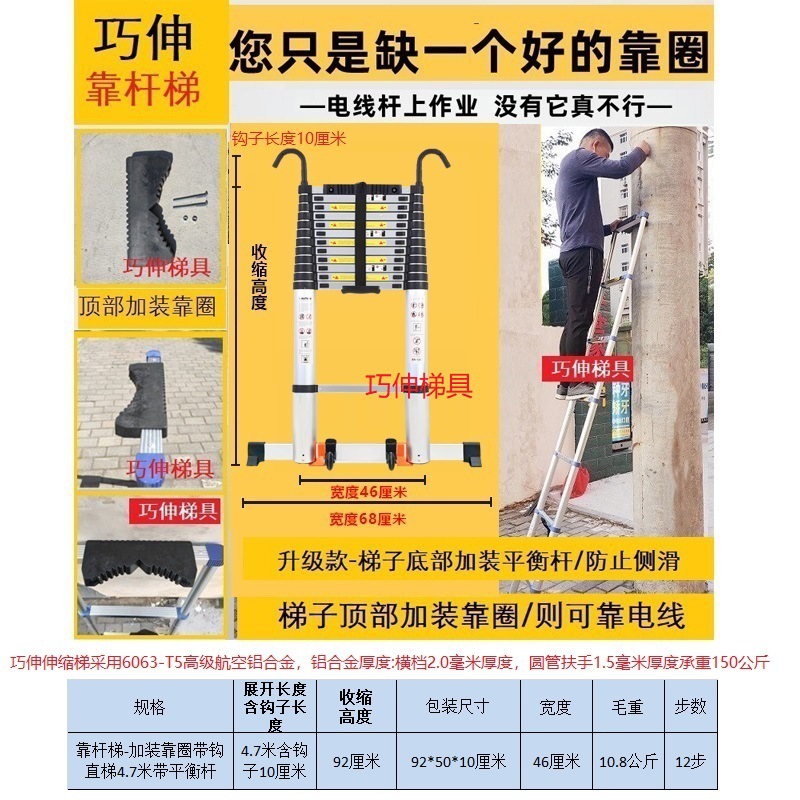 - Number of Steps: Ladder with side rail and hook installation, straight ladder 4.7m (including hook height)