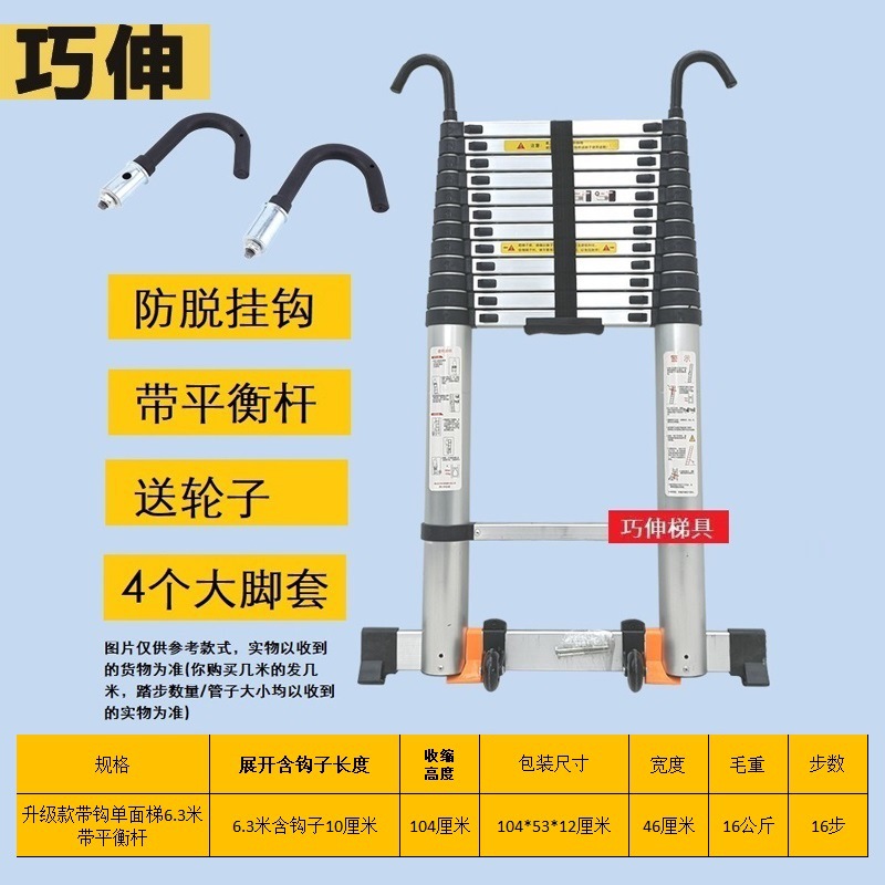 - Number of Steps: Ladder with hook and balance bar, straight ladder 6.3m (including hook height)