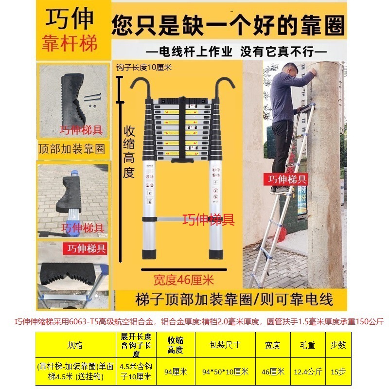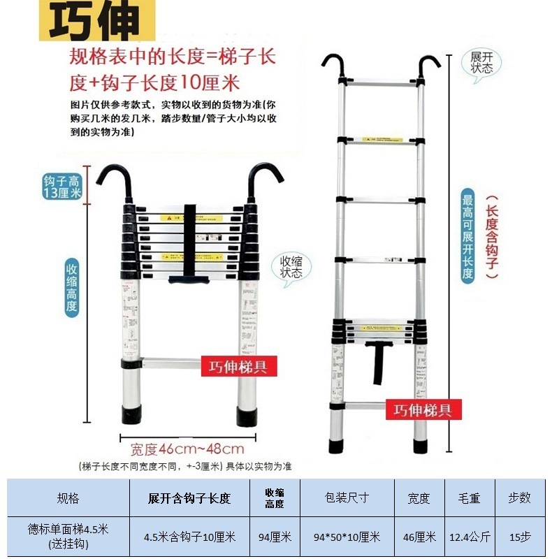 - Number of Steps: Ladder with side rail and hook installation, straight ladder 4.5m (including hook height)