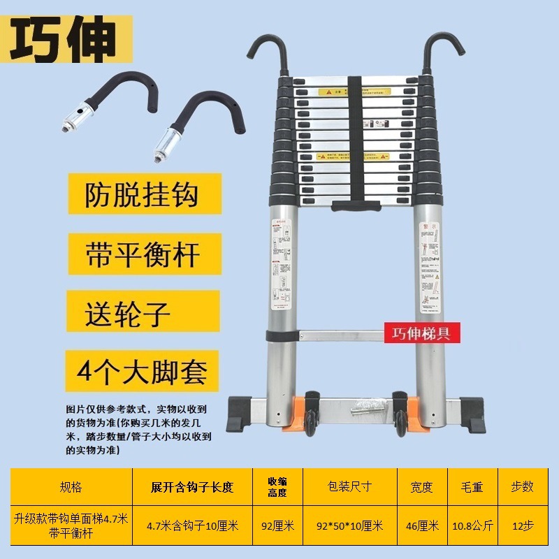 - Number of Steps: Ladder with hook and balance bar, straight ladder 4.7m (including hook height)