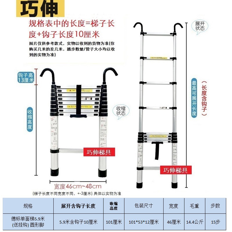 - Number of Steps: Ladder with side rail and hook installation, straight ladder 5.9m (including hook height)