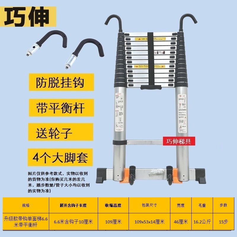 - Number of Steps: Ladder with hook and balance bar, straight ladder 6.6m (including hook height)