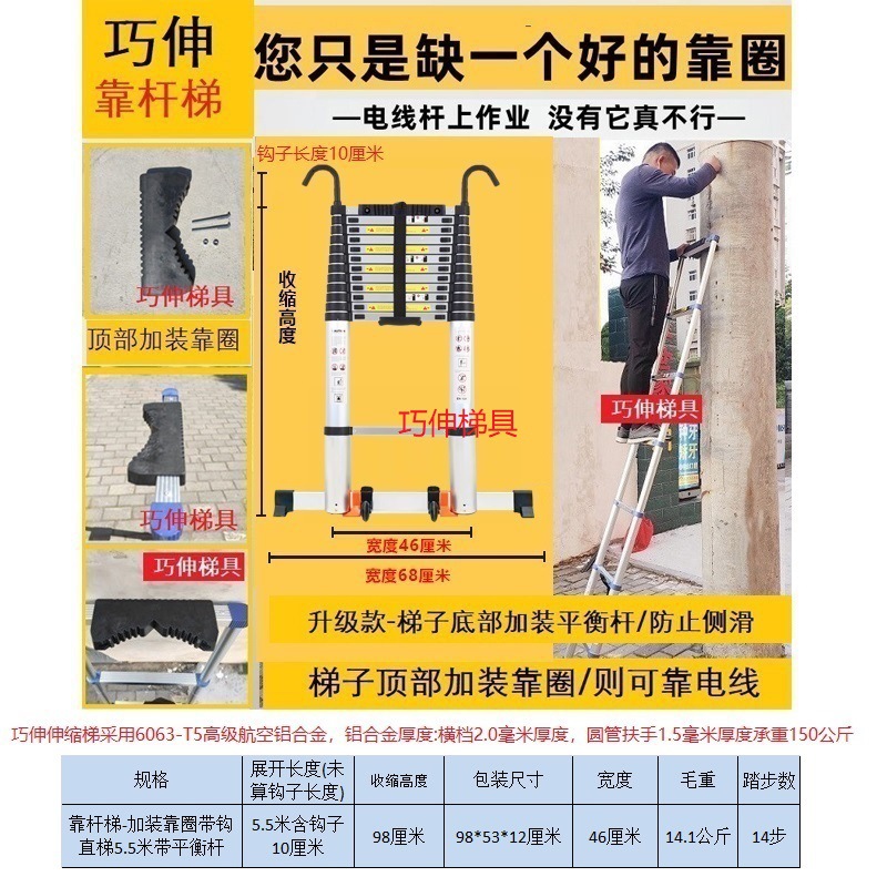 - Number of Steps: Ladder with side rail and hook installation, straight ladder 5.5m (including hook height)