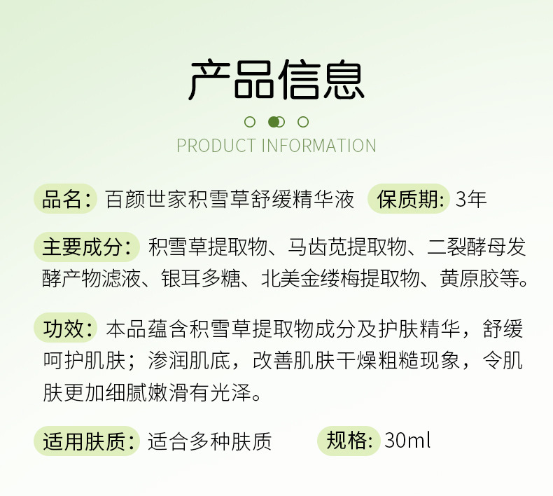 - 產品名稱:積雪草舒緩精華液