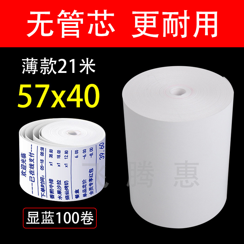 - Model: 57*40 coreless thin blue lettering 100 rolls