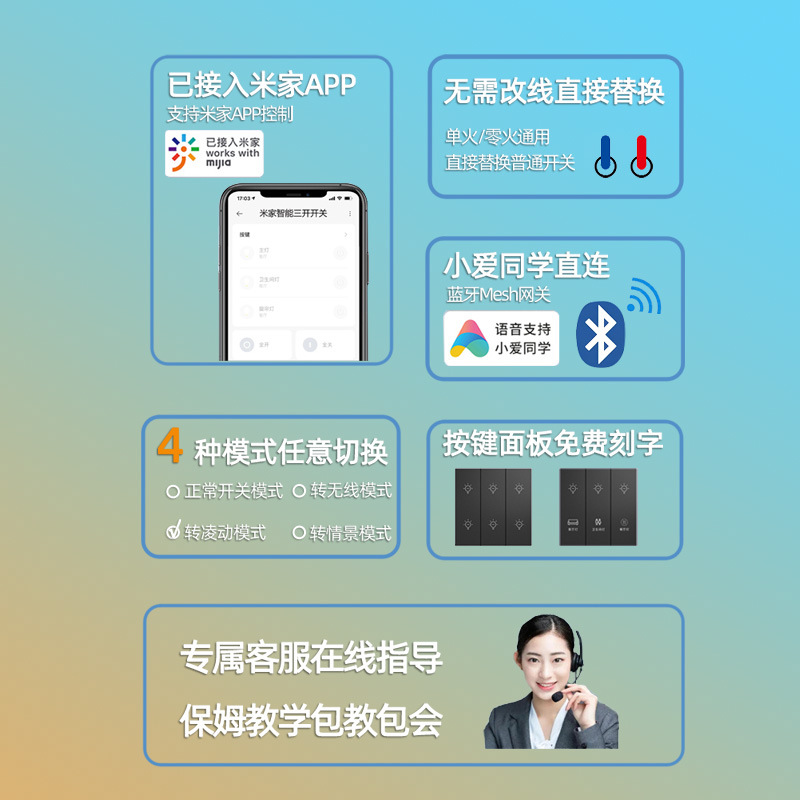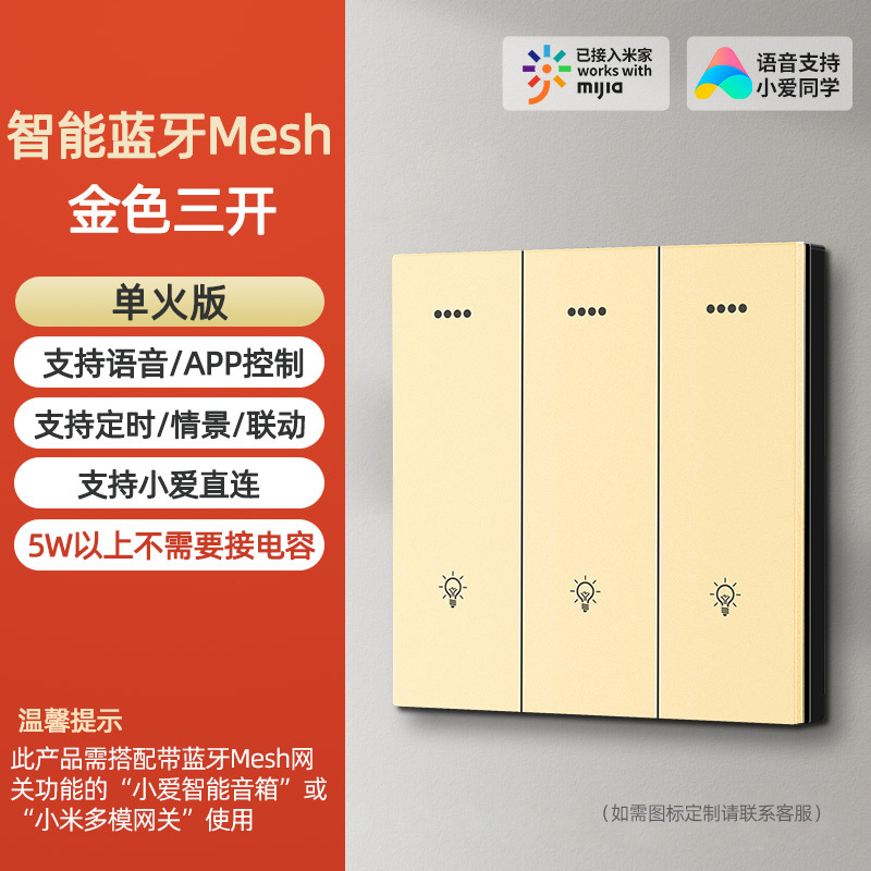 - Model: Golden Xiaomi Mesh three-open (single fire and zero fire universal version)