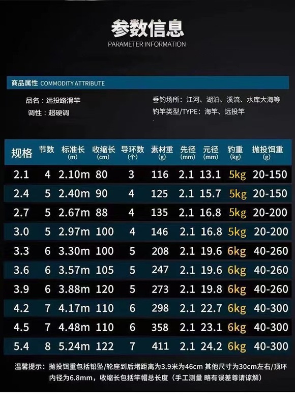 - Fishing rod classification: long-range casting rod