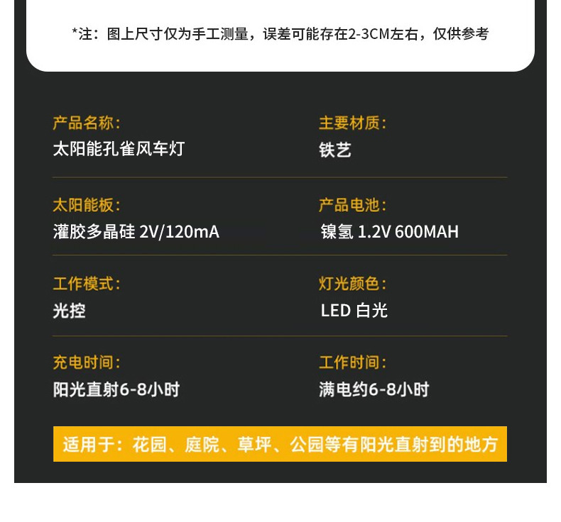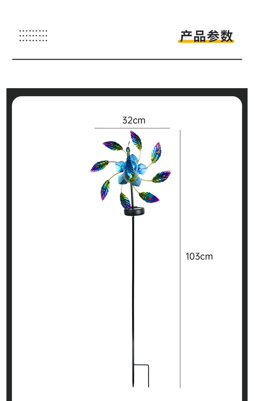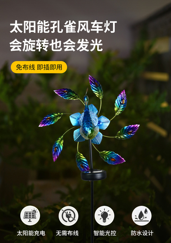 - 規格分類:太陽能風車孔雀燈