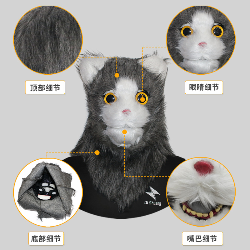 - 形象:可張嘴貓咪頭套面具