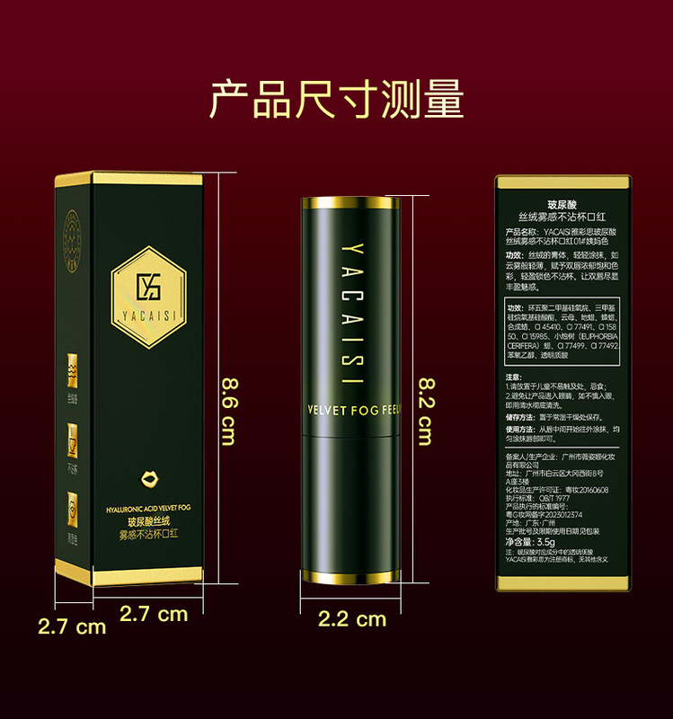 - Product name: Yacais hyaluronic acid velvet lipstick