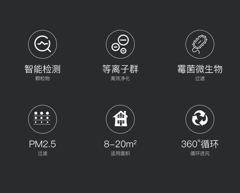 - Air purifier air volume: 50 cubic meters/hour