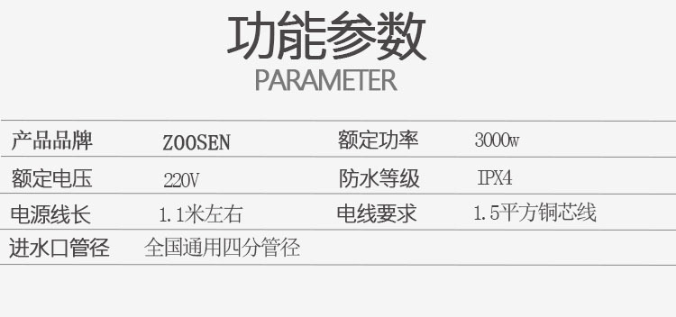 - Rated power: 3000W