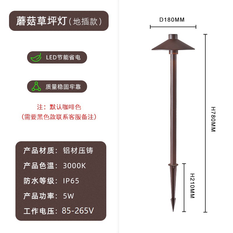 - 色溫:地插款草坪燈-暖光-咖色