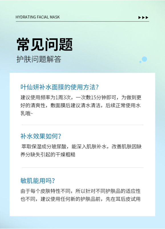 - 產品名稱:葉仙妍玻尿酸補水面膜