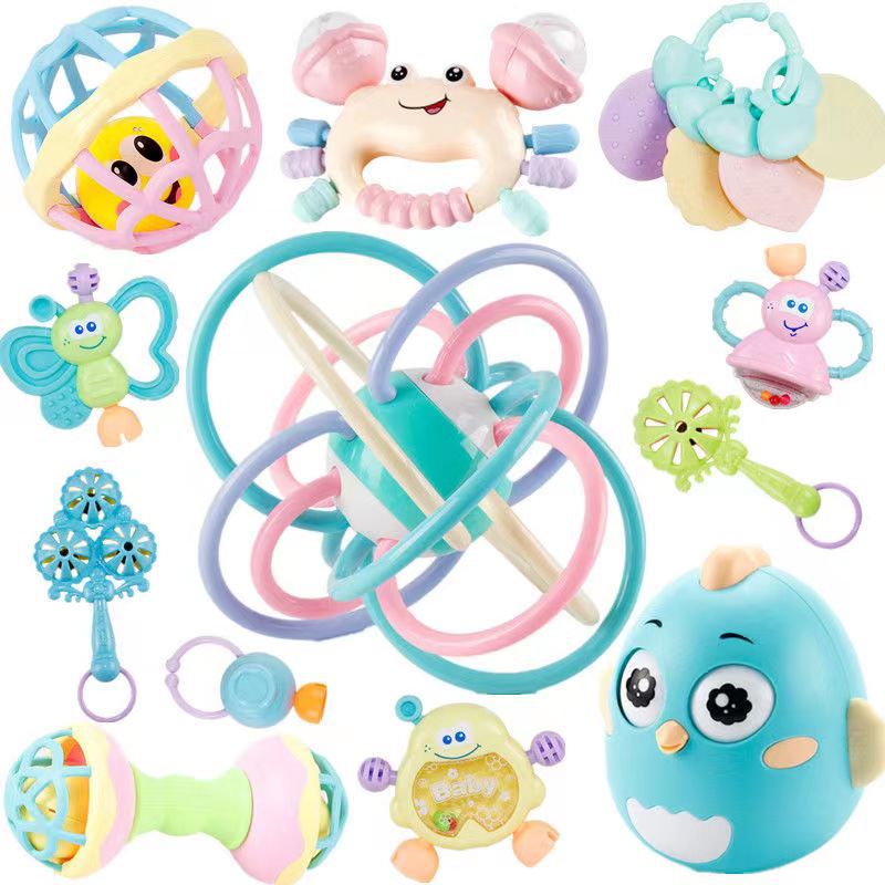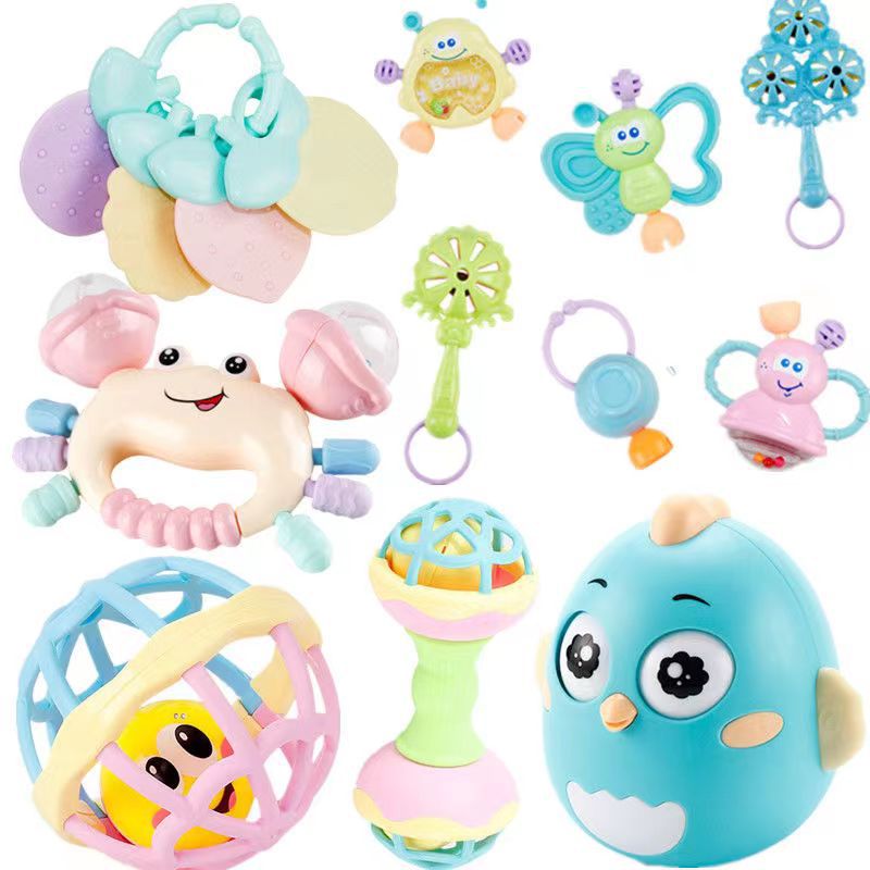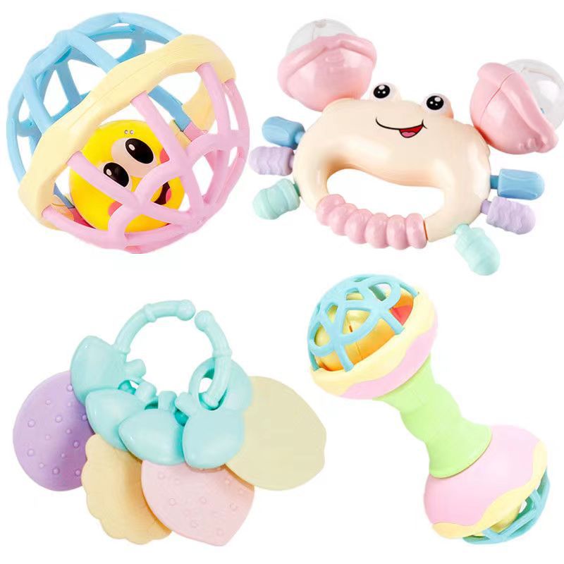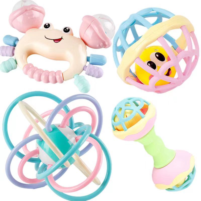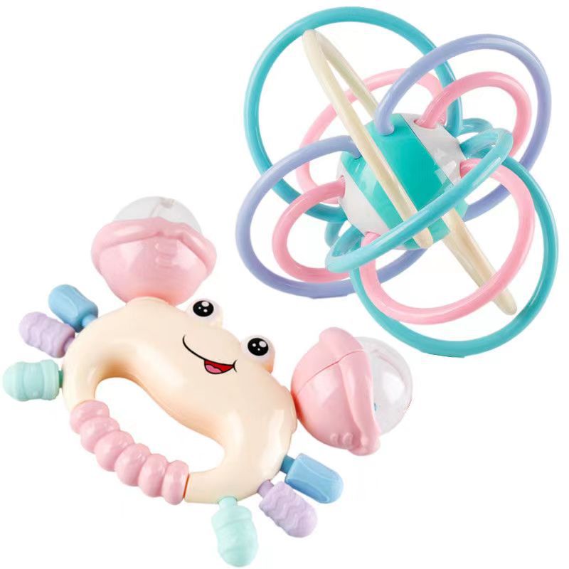 - Specifications: 4 pieces of rattle balls + barbell + crab rattle + teether