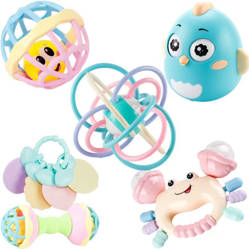 - Specifications: 5 pieces rattle ball barbell tumbler teether crab rattle