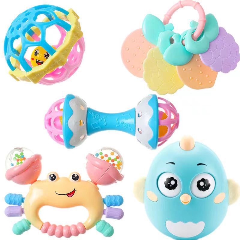 - Specifications: 5 pieces Manhattan ball rattle ball barbell teether crab rattle