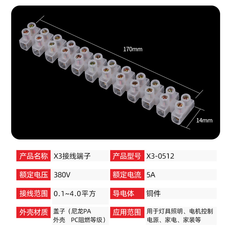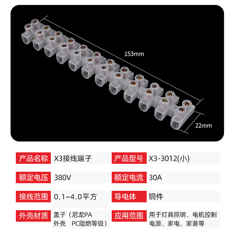 X3- 1012 flame retardant terminal block 10A pin jade through type terminal block 10A12P free screw terminal block