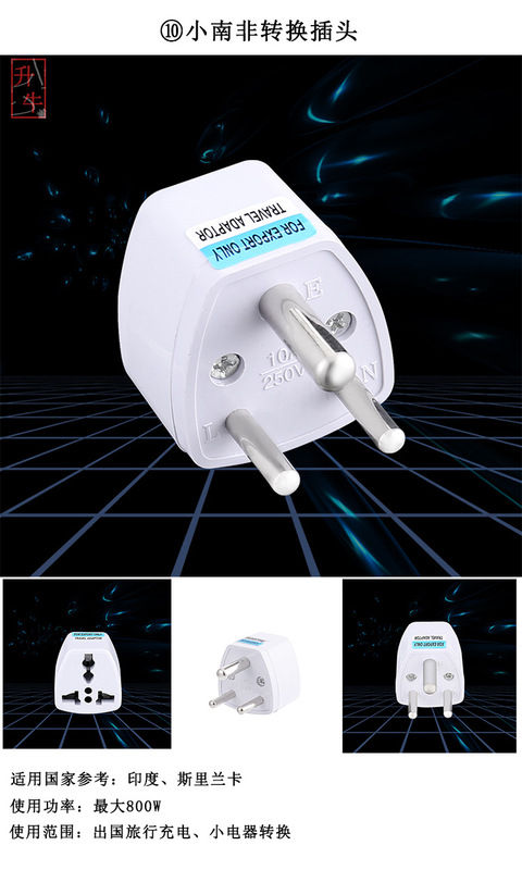 - Specifications and models: Small South African conversion plug