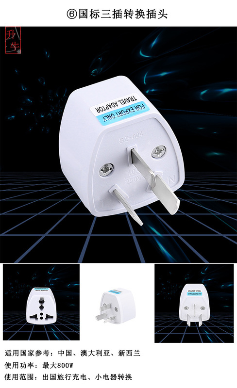 - Specifications and models: National standard/American standard two-pin conversion plug