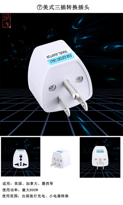 - Specifications and models: American three-pin conversion plug