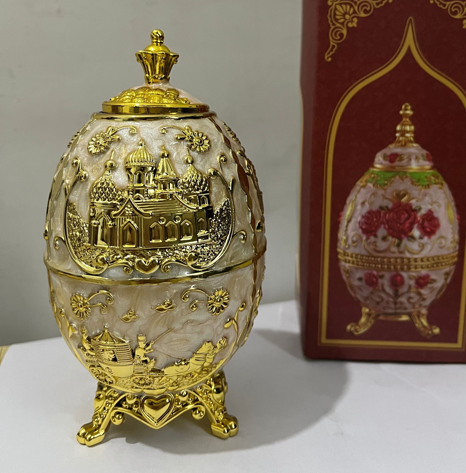 - Specifications: 7*7*10 cm gold and white color