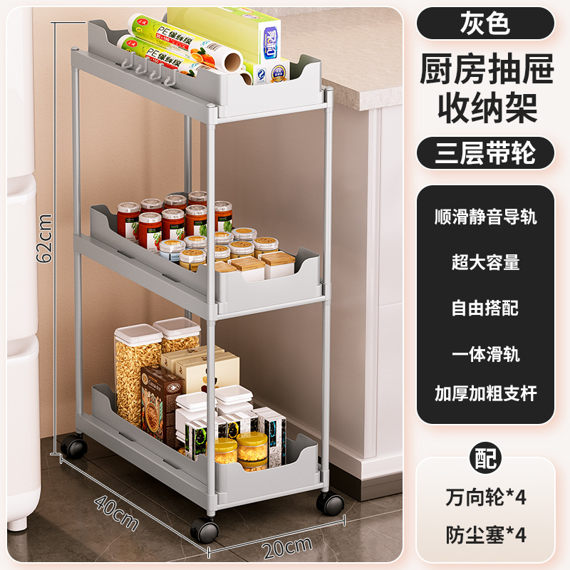 - Layer Specifications (Specs): Triple-layer full-drawer + wheels (gray)