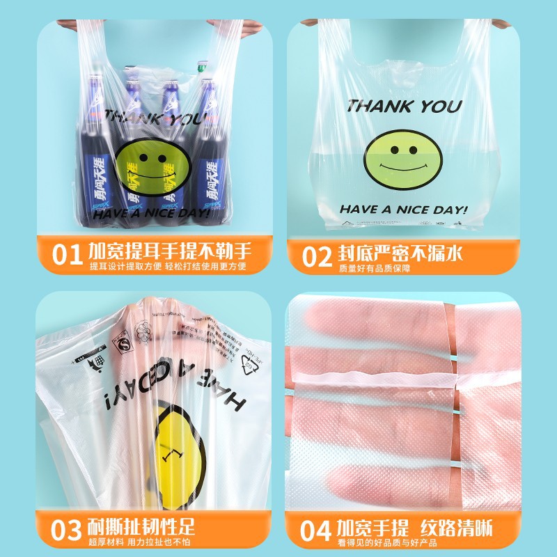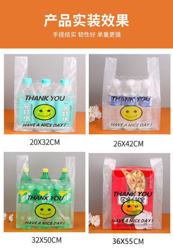 - Model specifications: White smiling bag-50 pcs; Thickened medium size strong load 26*42cm; Proportional to size