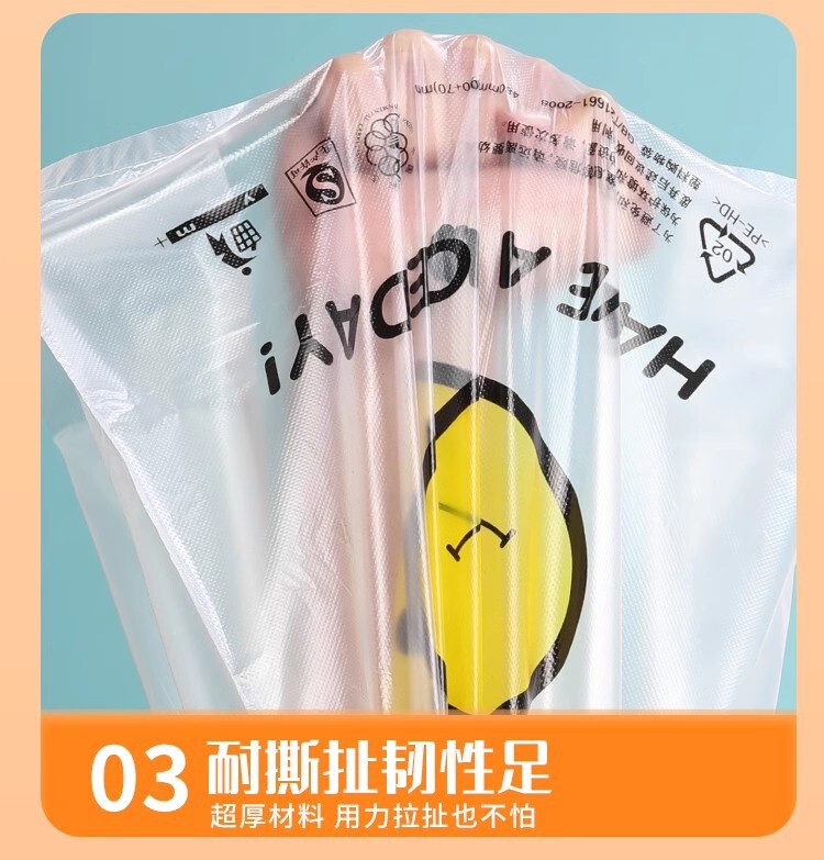 - Model specifications: White smiling bag-50 pcs; Thickened small size strong load 20*32cm; Proportional to size