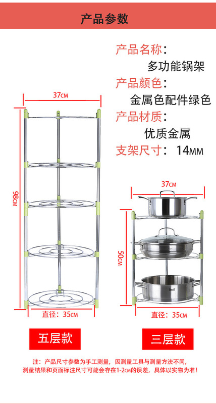 - Number of layers (specifications): Adjustable five-layer pot rack (green sleeve)