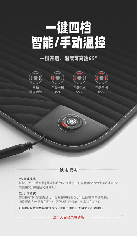 - Specifications: Ancheng Graphene Heated Seat + Backrest - 1.5T Corduroy Classic 1.5T Meter + 1.5T Meter Cigarette Lighter (12/24V) [Main Driver]