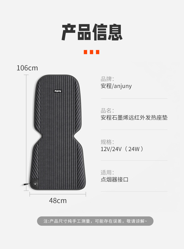 - Specifications: Ancheng graphene heated seat + backrest - 1.5T corduroy classic 1.5T meter + 1.5T meter cigarette lighter (passenger) (12/24V)