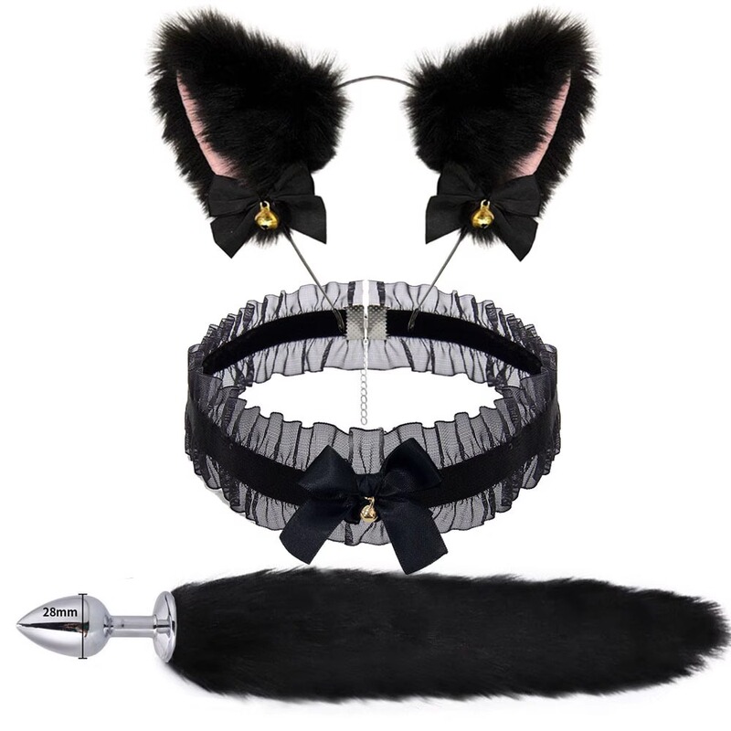 - 產品名稱:黑貓耳朵發圈蕾絲項圈眼罩口球肛塞尾巴