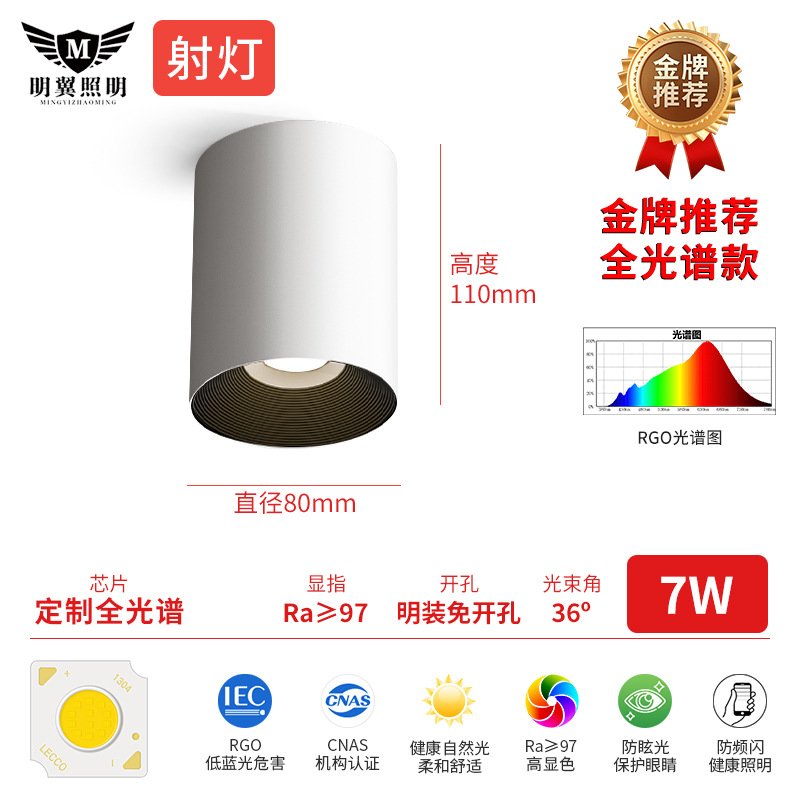 - Power: 7W-98 display full spectrum low blue light chip-spotlight
