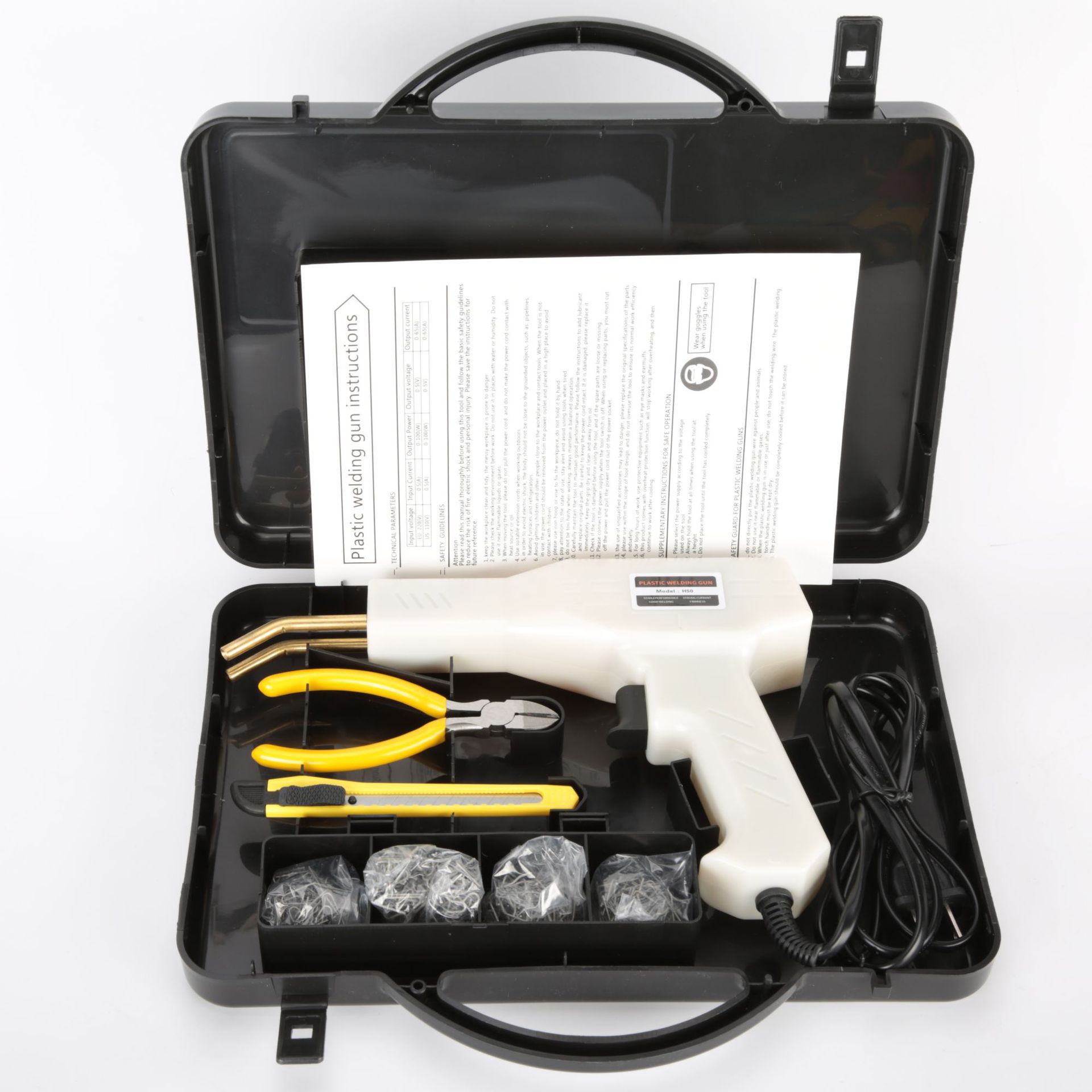- Set: New White Gun, Black W3 Plastic Box, EU Standard 220V