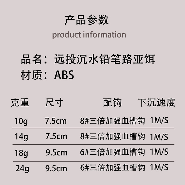 - 魚餌類型:鉛筆