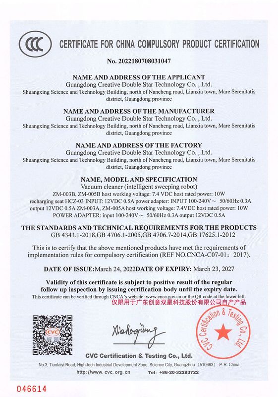 - Certification type: 3C, utility model patent, quality inspection report