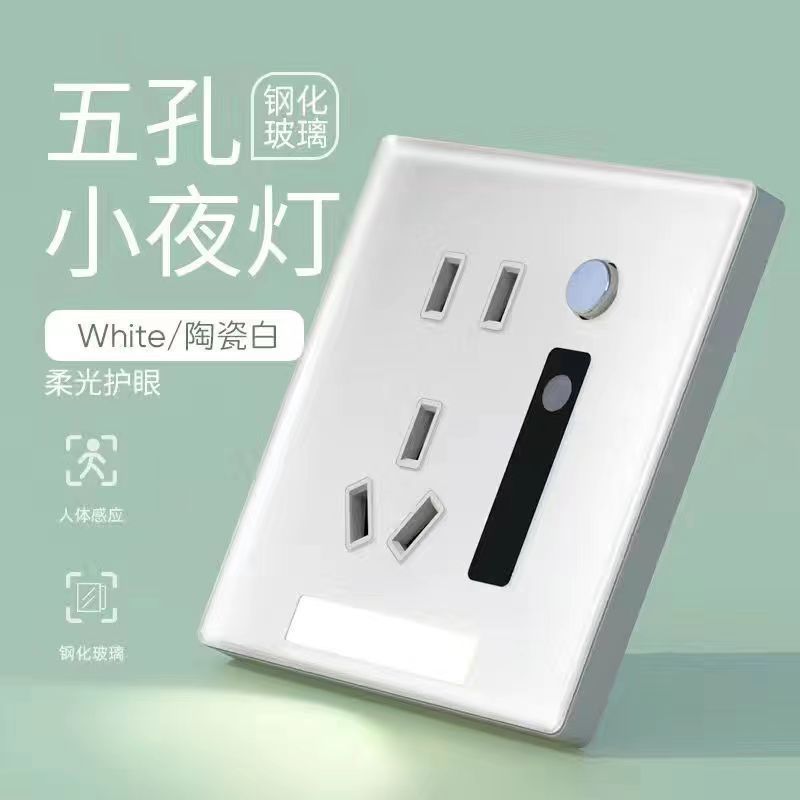 - Model: (White) Tempered Glass Socket with Motion-Activated Night Light