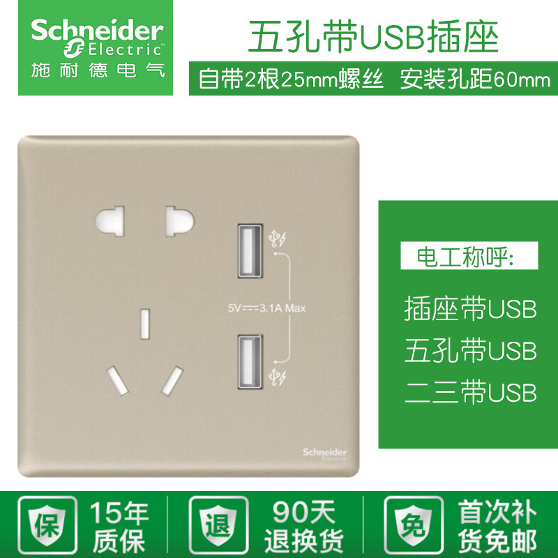 - Model: Five-pole outlet + dual USB