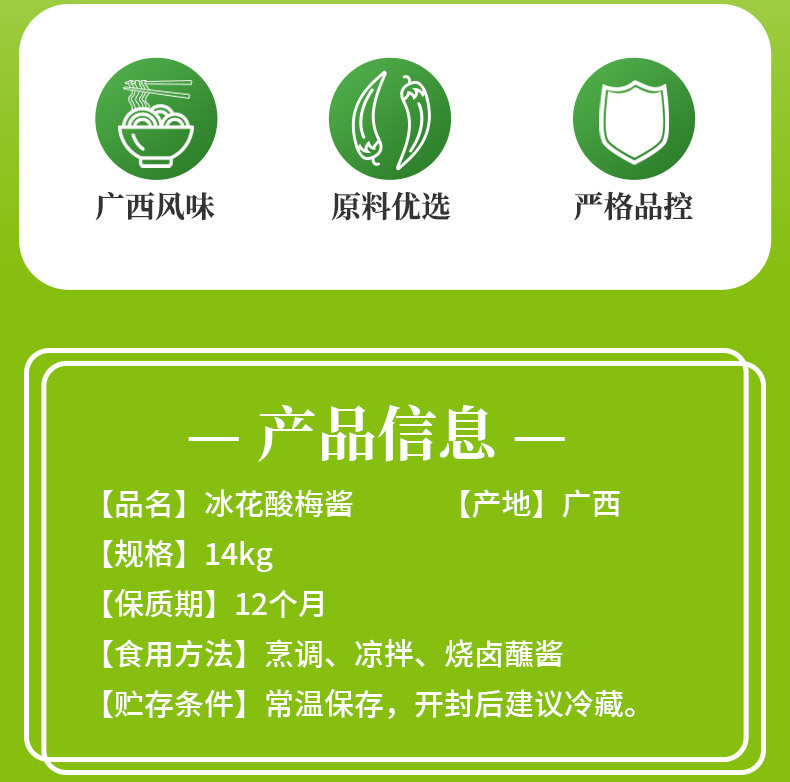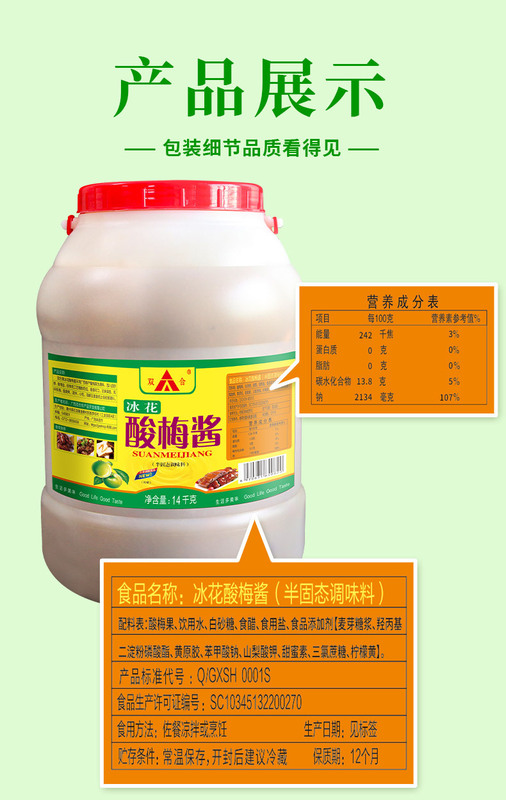 - Specifications: 14kg ice flower sour plum sauce