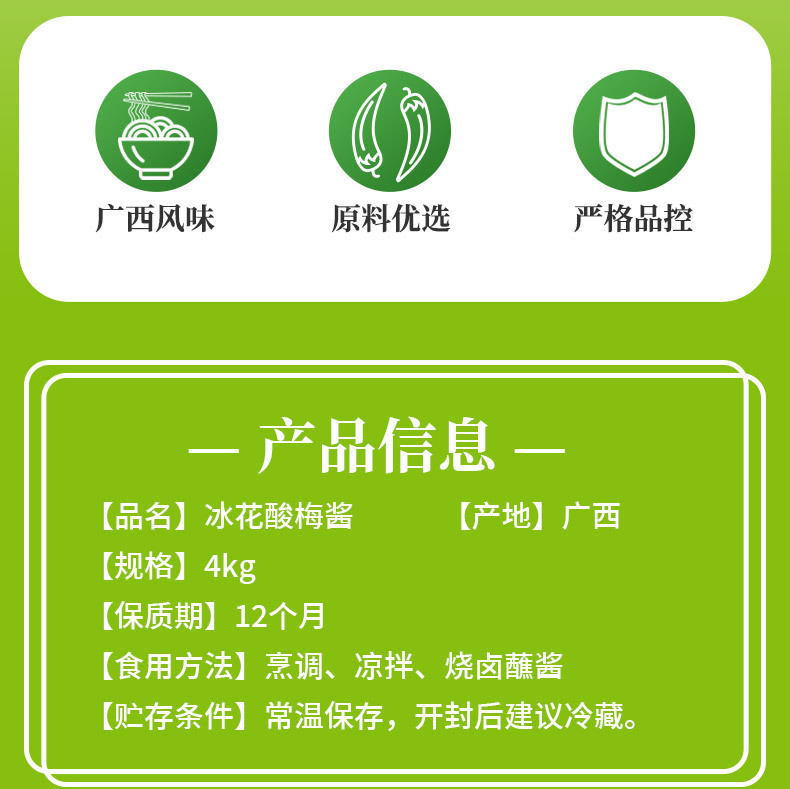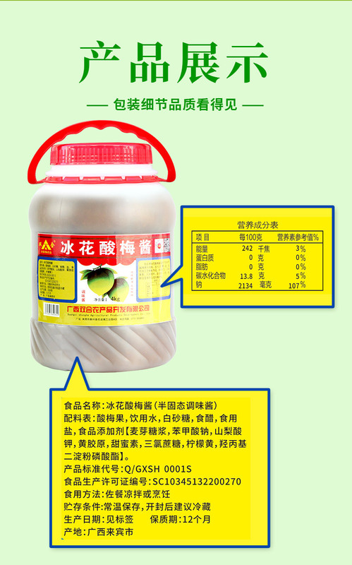 - Packing specifications: 4kg ice flower sour plum sauce
