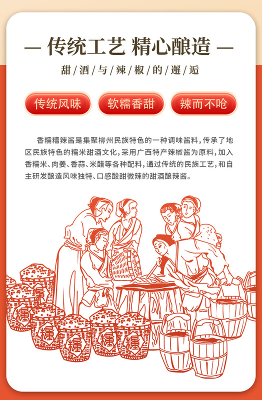 - Raw materials and ingredients: red pepper, glutinous rice, ginger, etc.