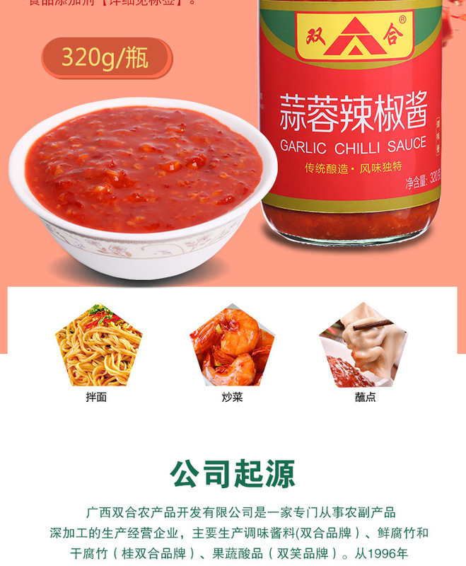 - 包裝規格:320g蒜蓉辣椒醬