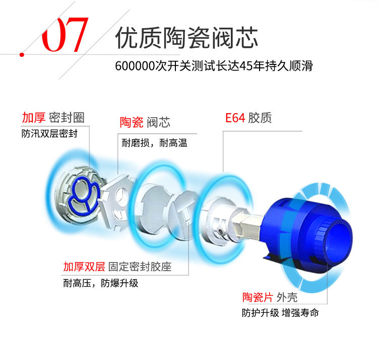 - 閥芯類型:陶瓷片閥芯