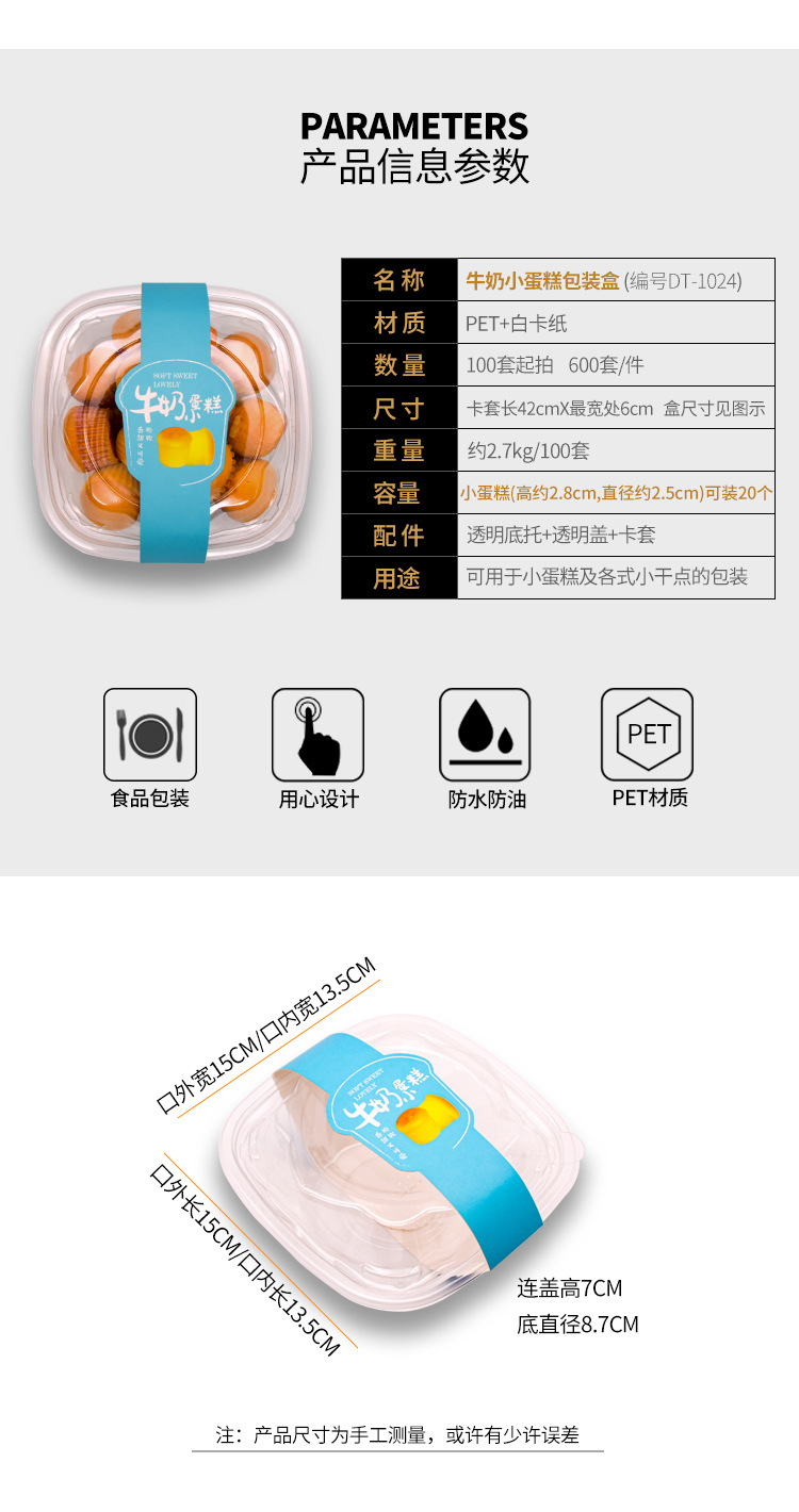- 規格:DT-1024牛奶小蛋糕盒100套底+蓋+卡套