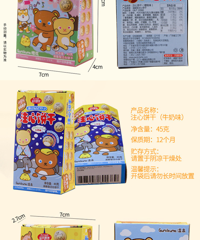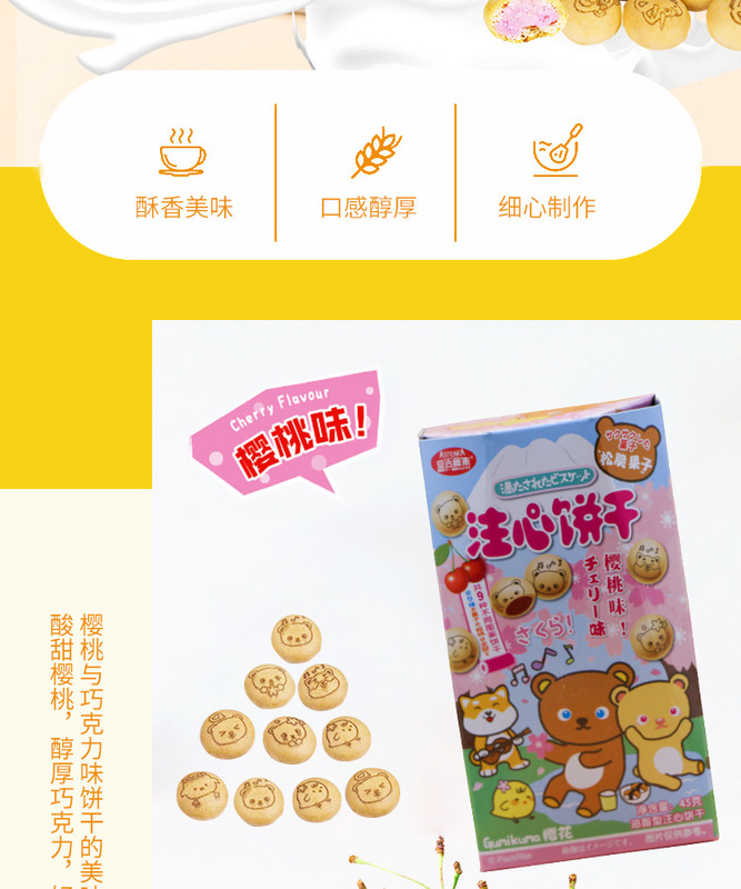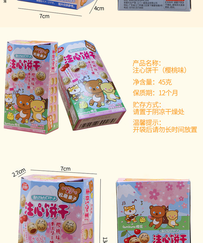 - Packaging specifications: 45g filled biscuits [cherry flavor]