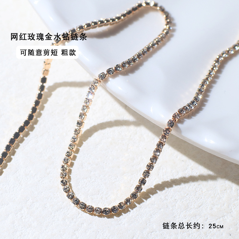 - 規格:細款玫瑰金水鑽鏈條