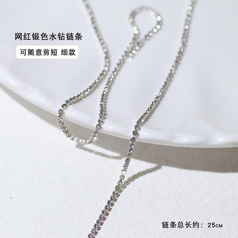 - 規格:細款銀色水鑽鏈條