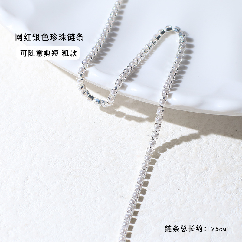 - 規格:細款銀色珍珠鑽鏈條