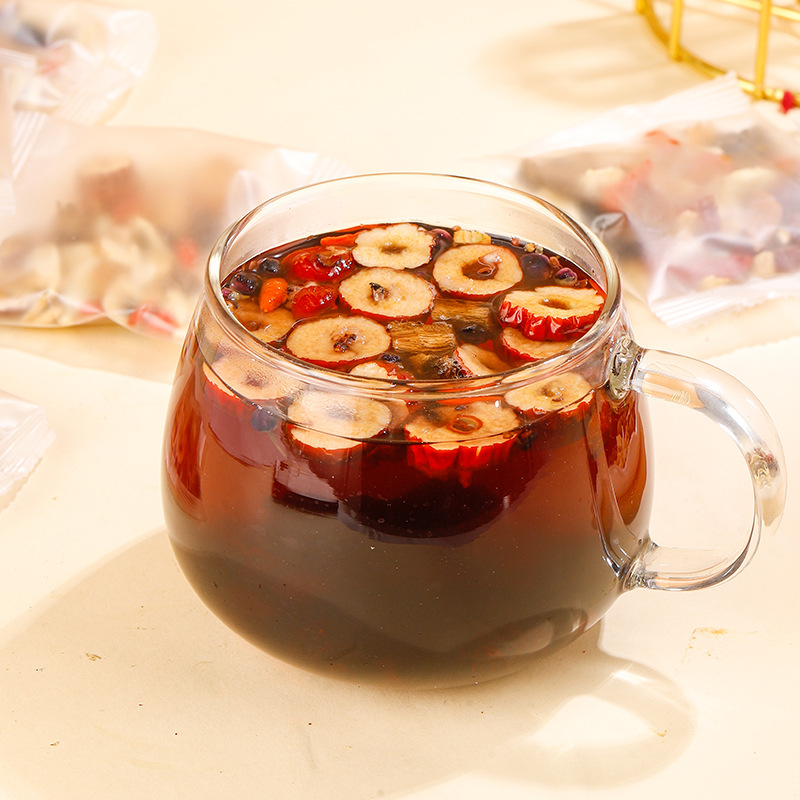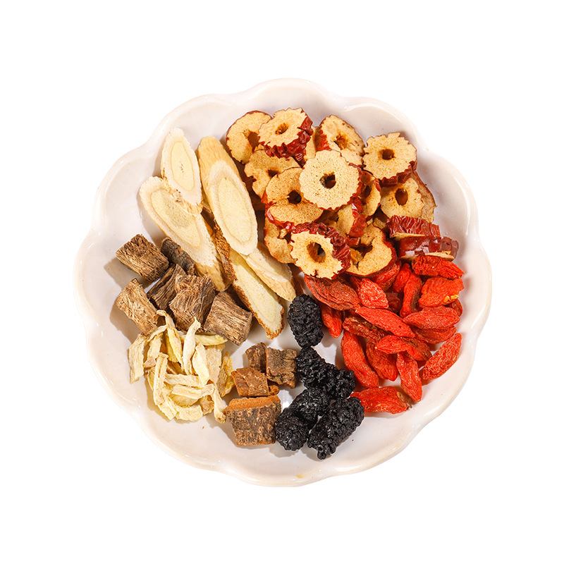 - 原料與配料:紅棗桑椹薑絲人參桂皮葛根黃芪枸杞
